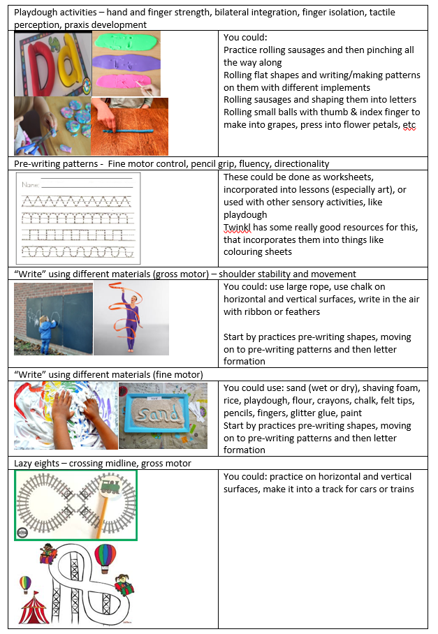 - Biomechanics & Ergonomics: Our Occupational Therapists and Staff constantly monitor writing activities that pupils are engaging, ensuring desk and chair heights are correct and pupil's bodies are positioned correctly. Some pupils need specialist equipment to support their posture, e.g. a specialist chair, foot stabilisers etc.